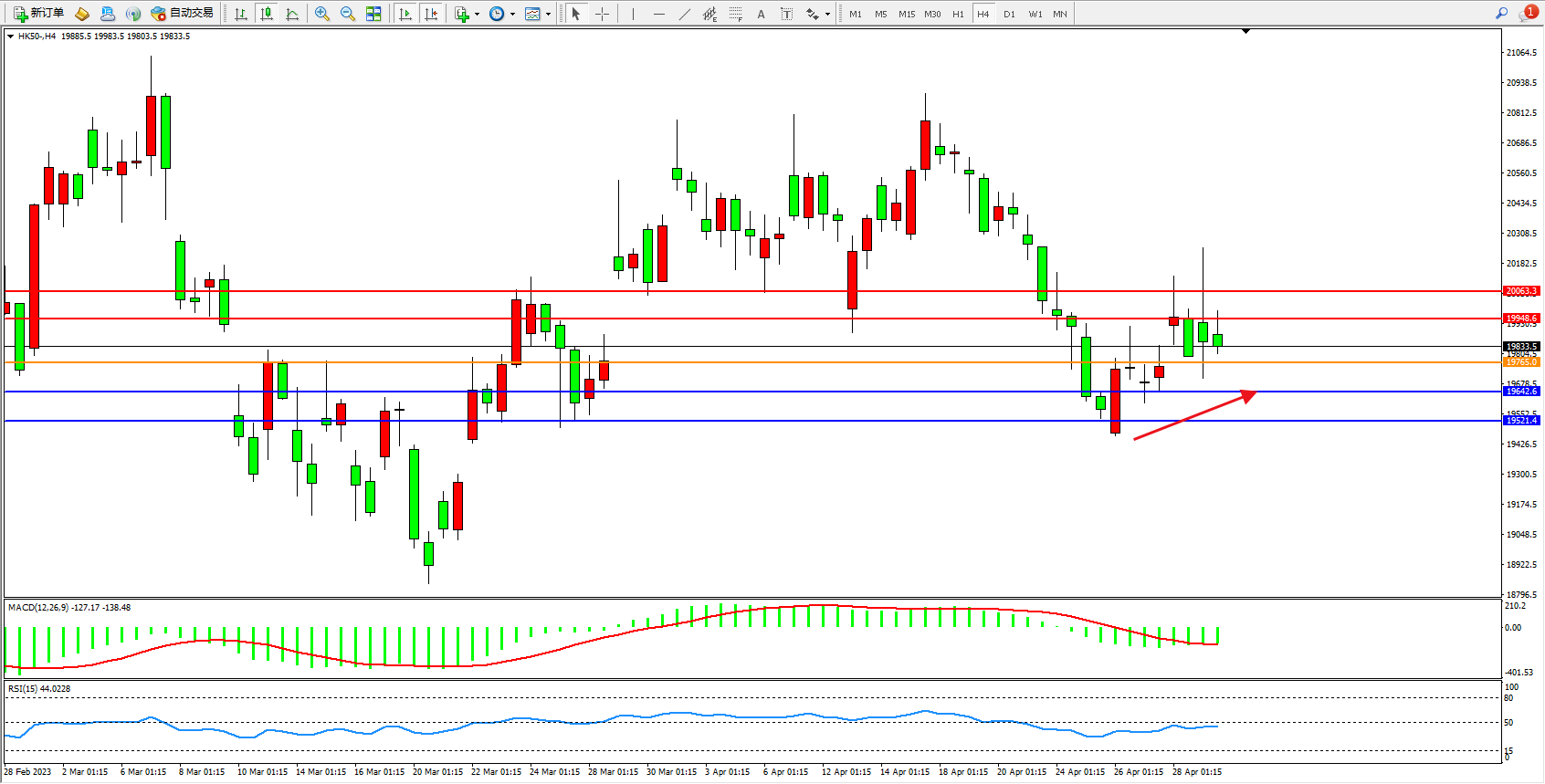 恒指HK50 4小时图