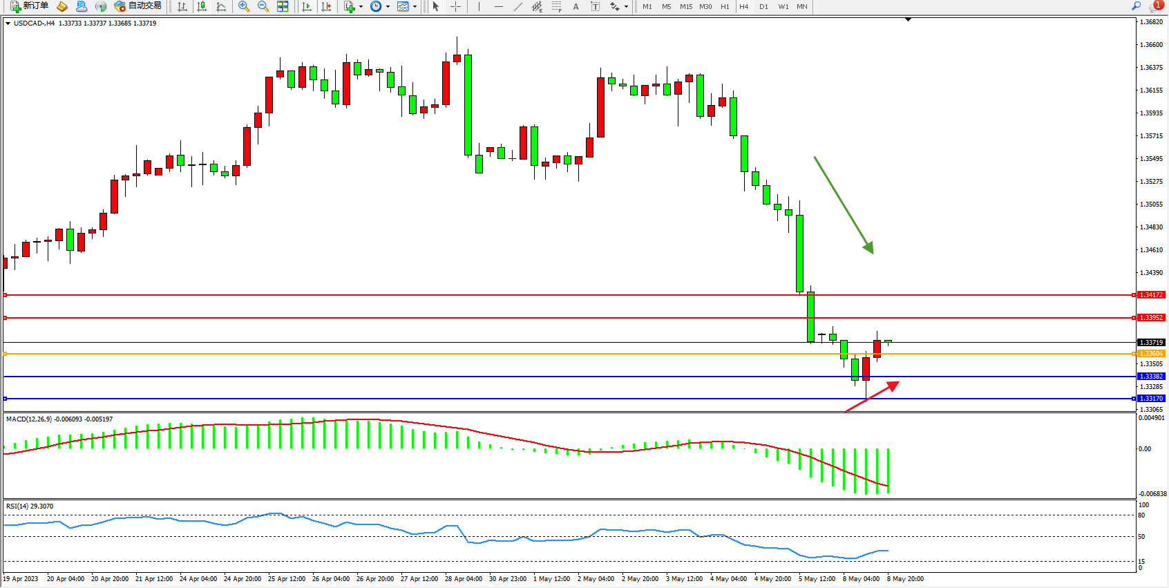美元加元USDCAD——4小时K线图显示: