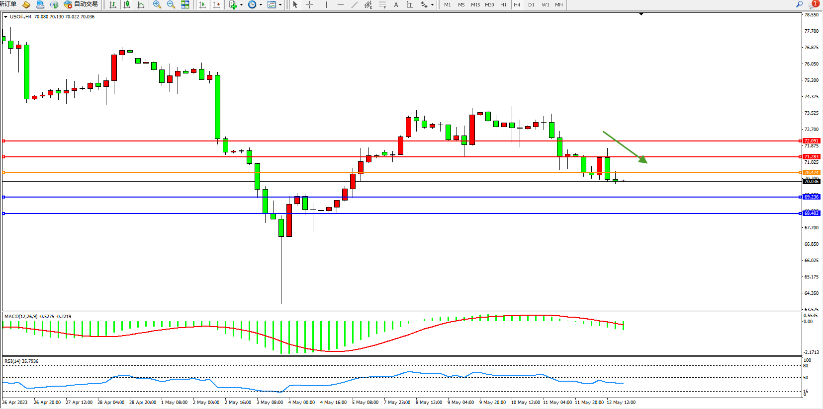 交易策略:70.474下方看跌,目标69.236 68.402