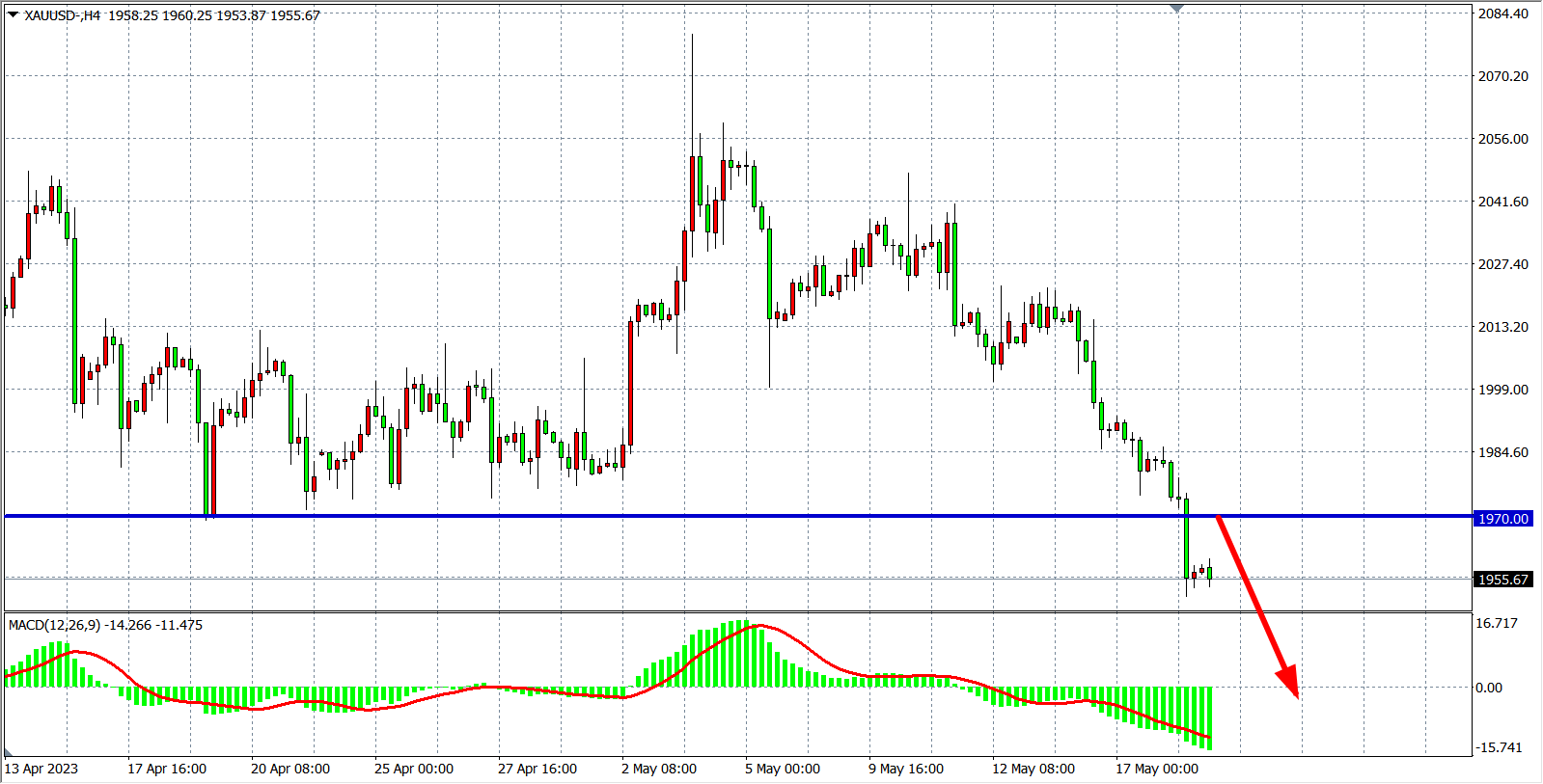 周四(5月18日)因美国公布更多强劲的经济数据进一步削弱了市场对美联储可能暂缓加息的押注,同时美联储官员继续放“鹰”,美国国会在提高债务上限的谈判中也取得进展,现货黄金延续跌势,创下一个半月以来新低,较日高大跌超30美元,最终收跌1.22%。展望后市,由于经济表现好于预期,市场正在逐渐降低激进宽松政策的押注,黄金面临下行风险。