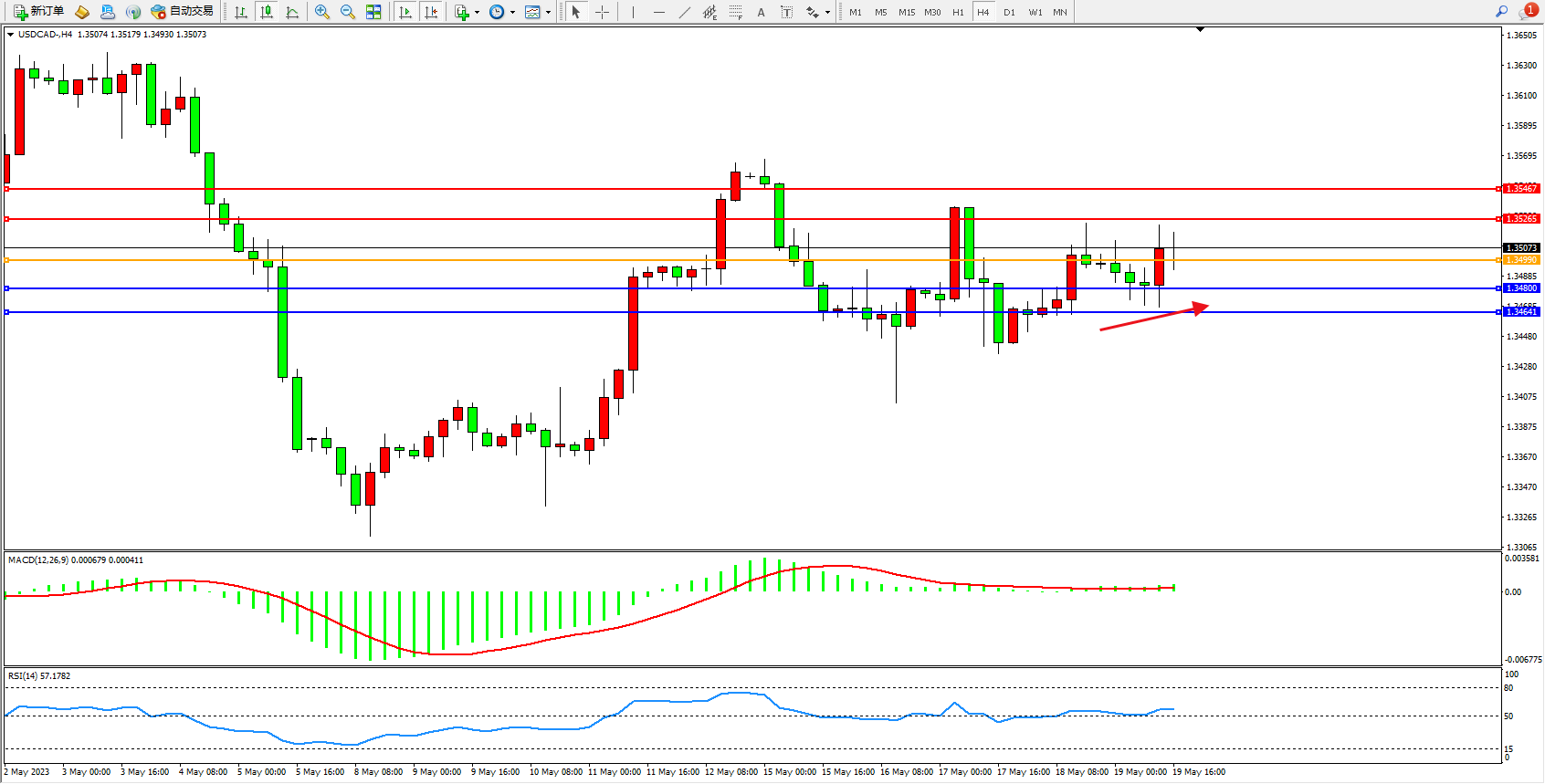 美元加元USDCAD——4小时K线图显示: