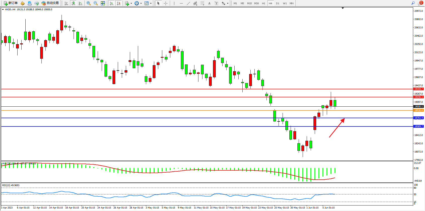 恒指HK50 4小时图
