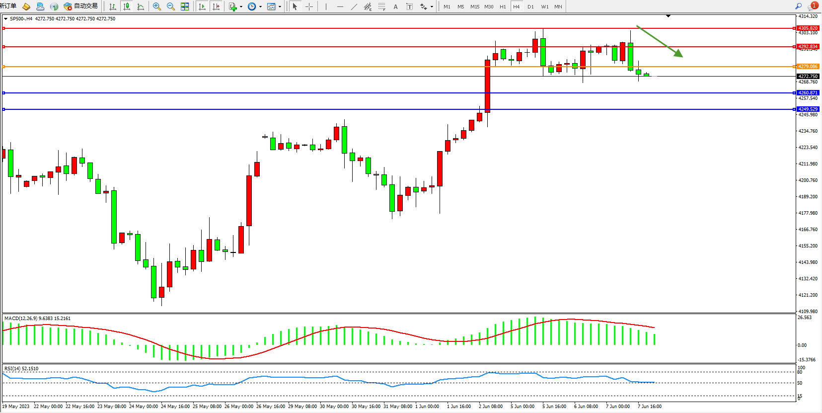 标普500指数6月7日(周三)收盘下跌16.25点,跌幅0.38%,报4267.60点;美国财长耶伦:看到了在保持强劲劳动力市场的同时降低通货膨胀的途径。投资和财政政策之间没有权衡。降低通胀率是当务之急。劳动力市场有所缓和。银行系统流动性强劲。