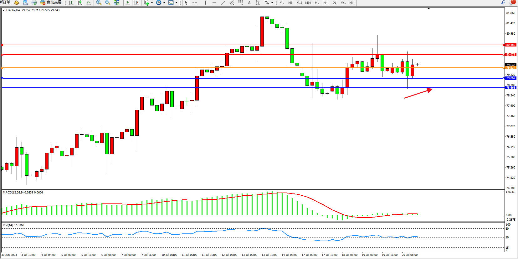 布油UKOil——4小时K线图显示: