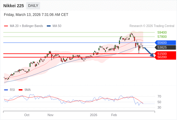 Nikkei 225 短线: 短期关键阻力位在55600。