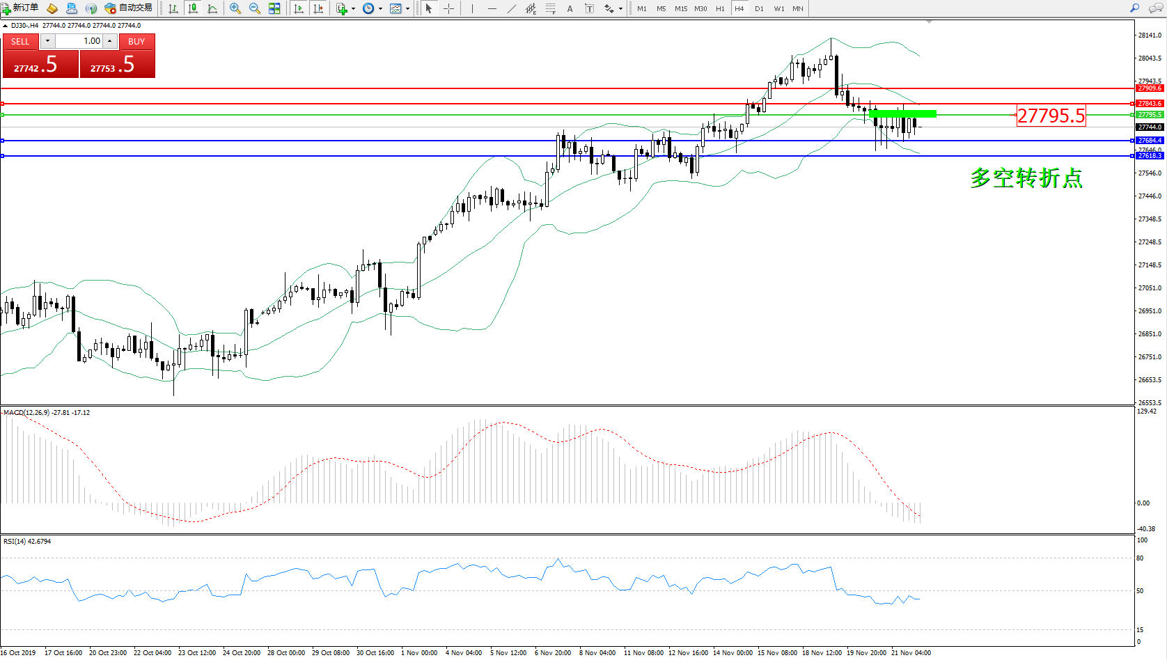道琼斯指数1121日(周四)收盘下跌54.80点,跌幅0.20%,报27766.29点。最近几周投资者对达成协议的可能性越来越乐观,但最近几天,中美双方的贸易言论都趋于强硬,令投资者感到不安。这些消息的影响相互抵消,实际上对市场不利,目前,股市非常依赖贸易消息。