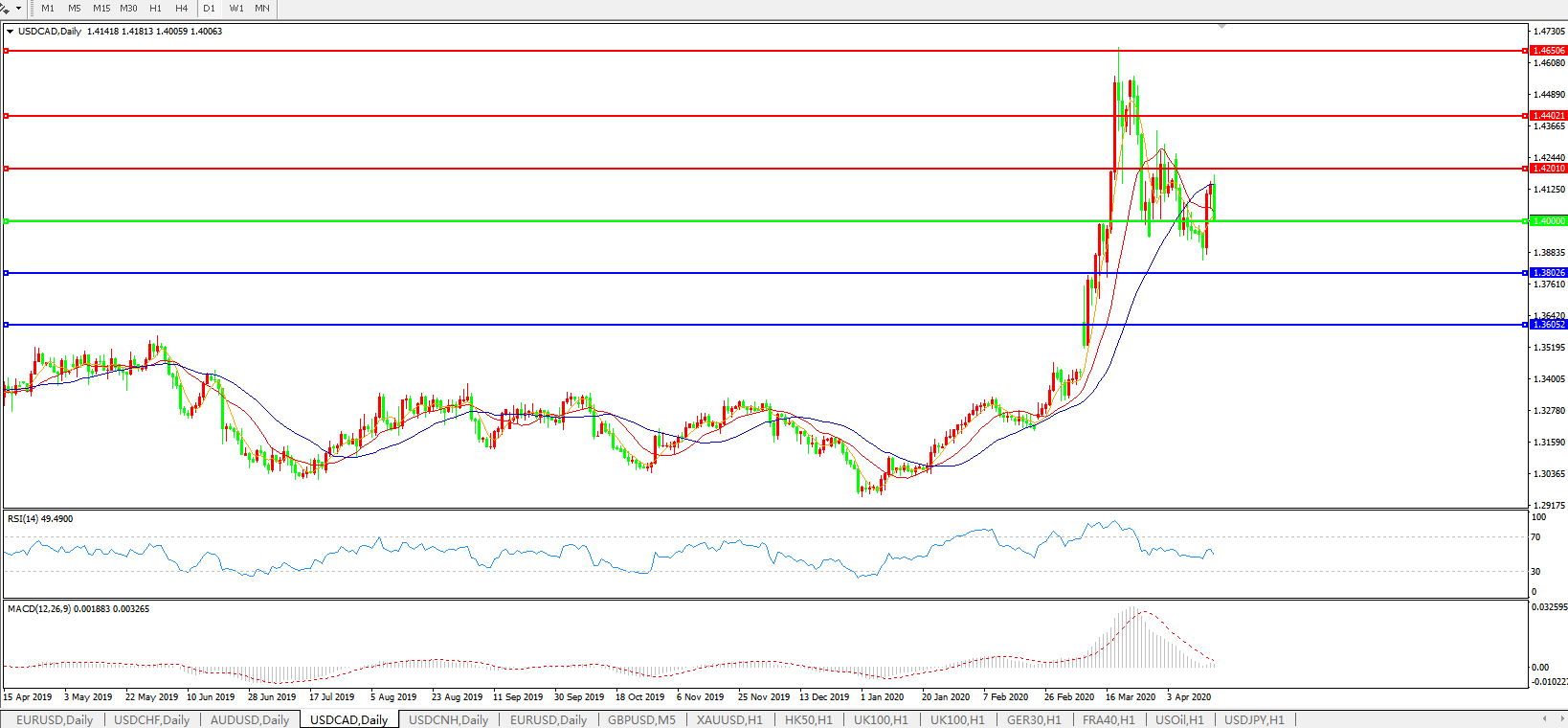 美元兑加元USDCAD 日线图:
