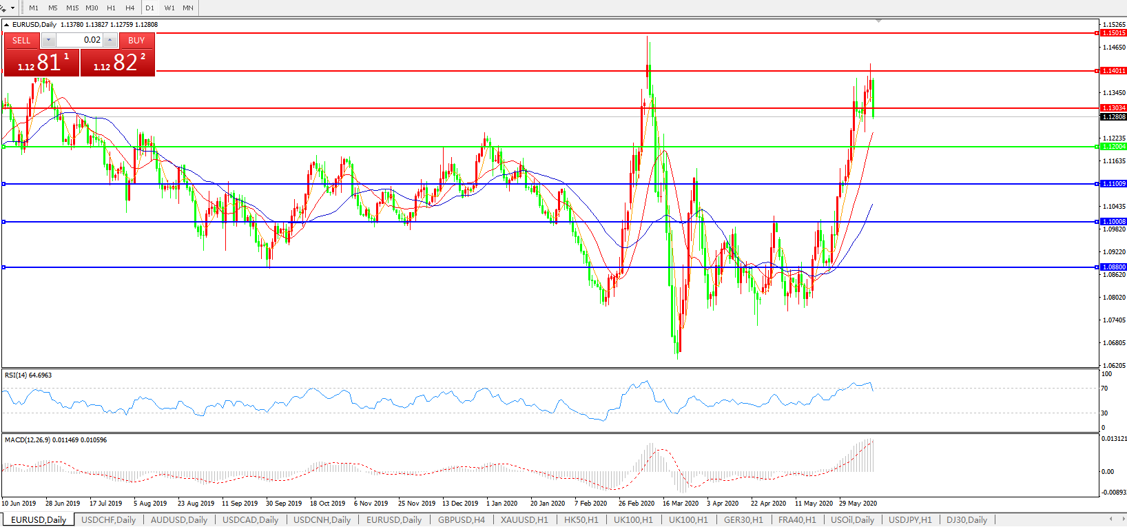 随着对疫情再度爆发的担忧加剧,市场情绪生变,风险资产齐齐下挫。数据显示,美国一些州的感染率有所上升。美媒分析称,尚不清楚病例增加是否与经济活动增加有关。健康专家还说,现在也不能说过去两周美国国内的大规模抗议活动是否导致了更多的感染。瑞穗银行外汇策略师Neil Jones表示,疫情爆发第二波的风险可能成为欧元兑美元汇率的主要决定因素。除非欧元区的封锁限制继续放松,各国政府一致通过建立复苏基金的提议,否则欧元可能会继续下跌。随着投资者仓位更加平衡,技术图表闪烁着警告信号,市场不太可能追高。分析师指出,由于仓位调整更加均衡,投资者可能不会像本月早些时候那样大举推高欧元。此外,技术面显示,深度回调可能即将来临。顺势指标等动能指标已经发出了看跌信号,而欧元的相对强弱指数RSI正背离价格走势。