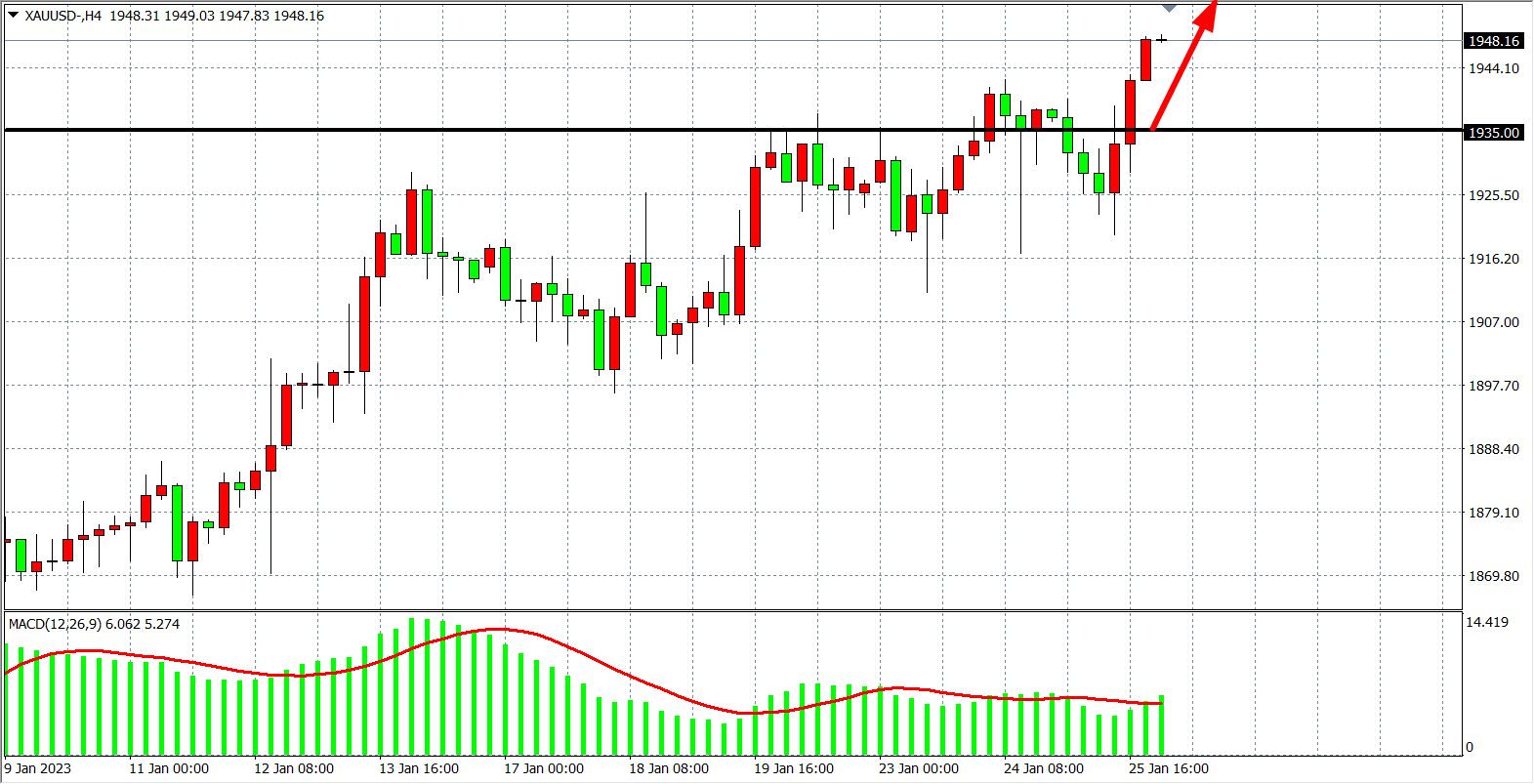 交易策略:在1935.00 之上看涨,目标1950.00         1970.00