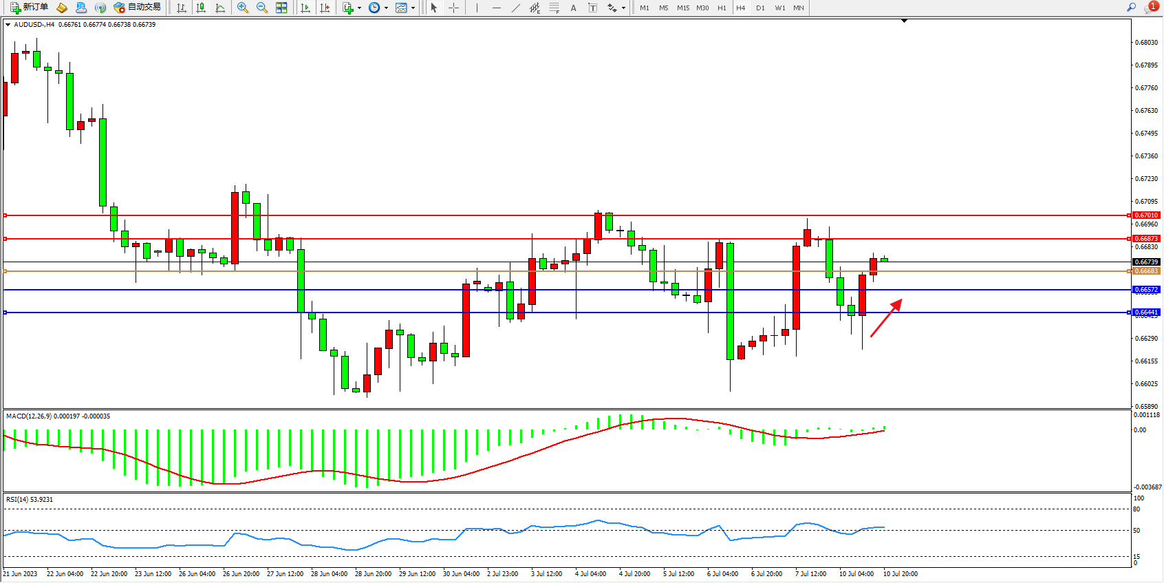 交易策略:0.66683上方看涨,目标0.66873 0.67010