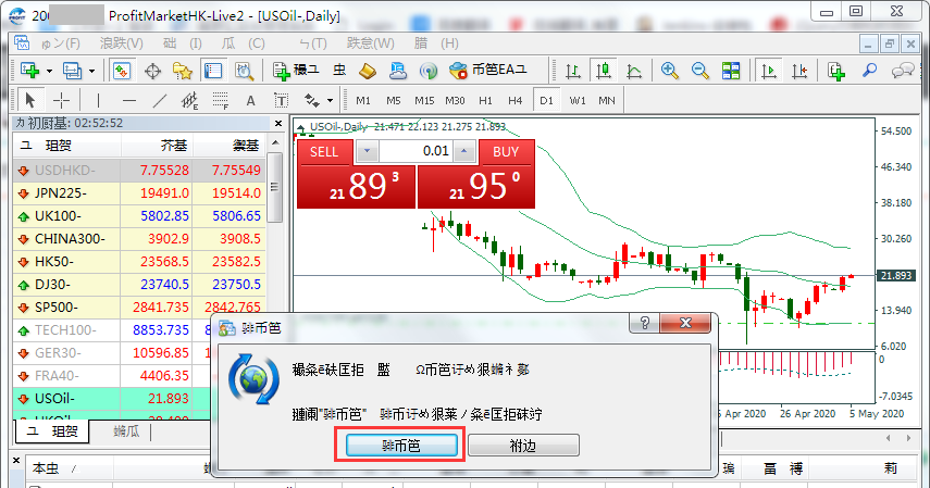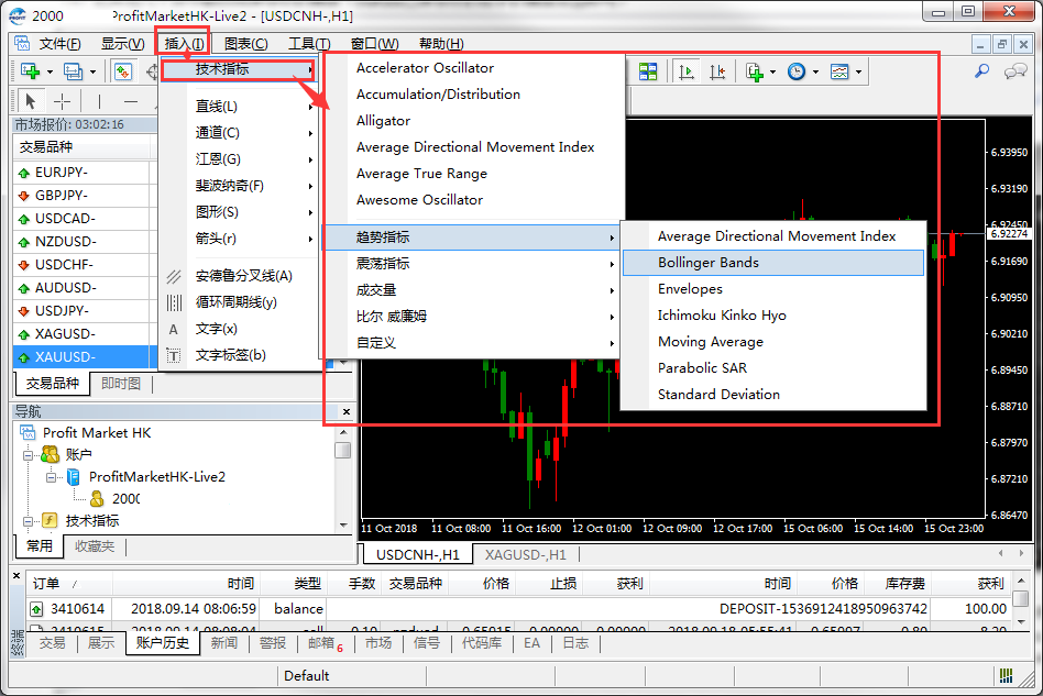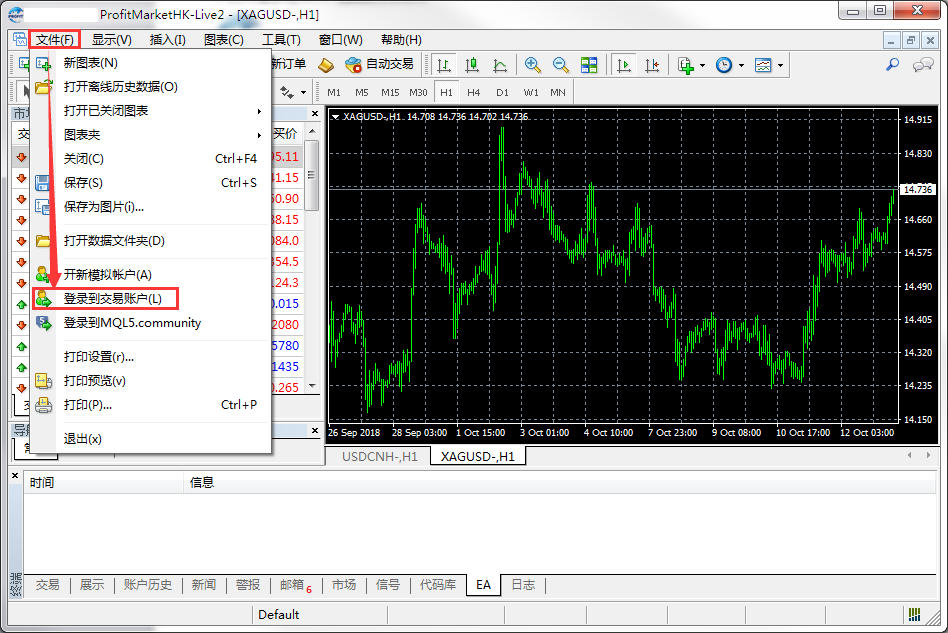 注:登录实盘帐号要选择服务器ProfitMarketHK-Live2登录