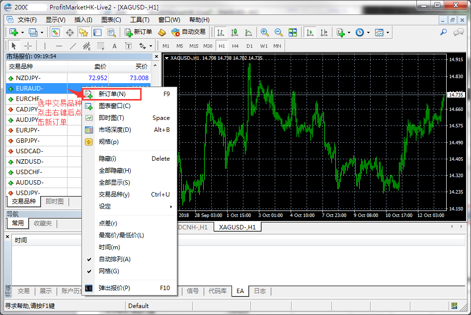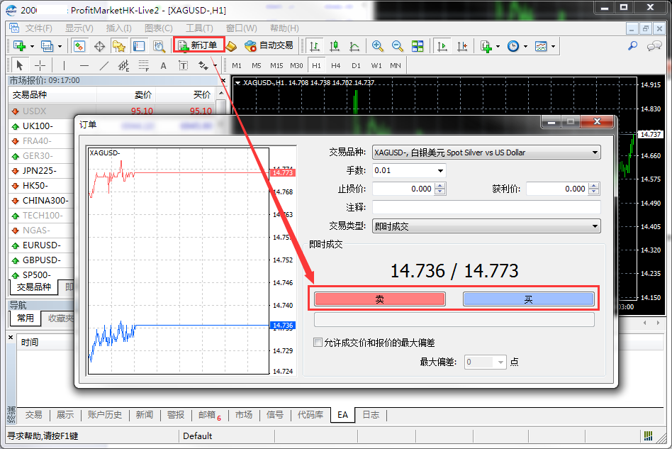 2.【市场报价】→交易品种→【新订单】